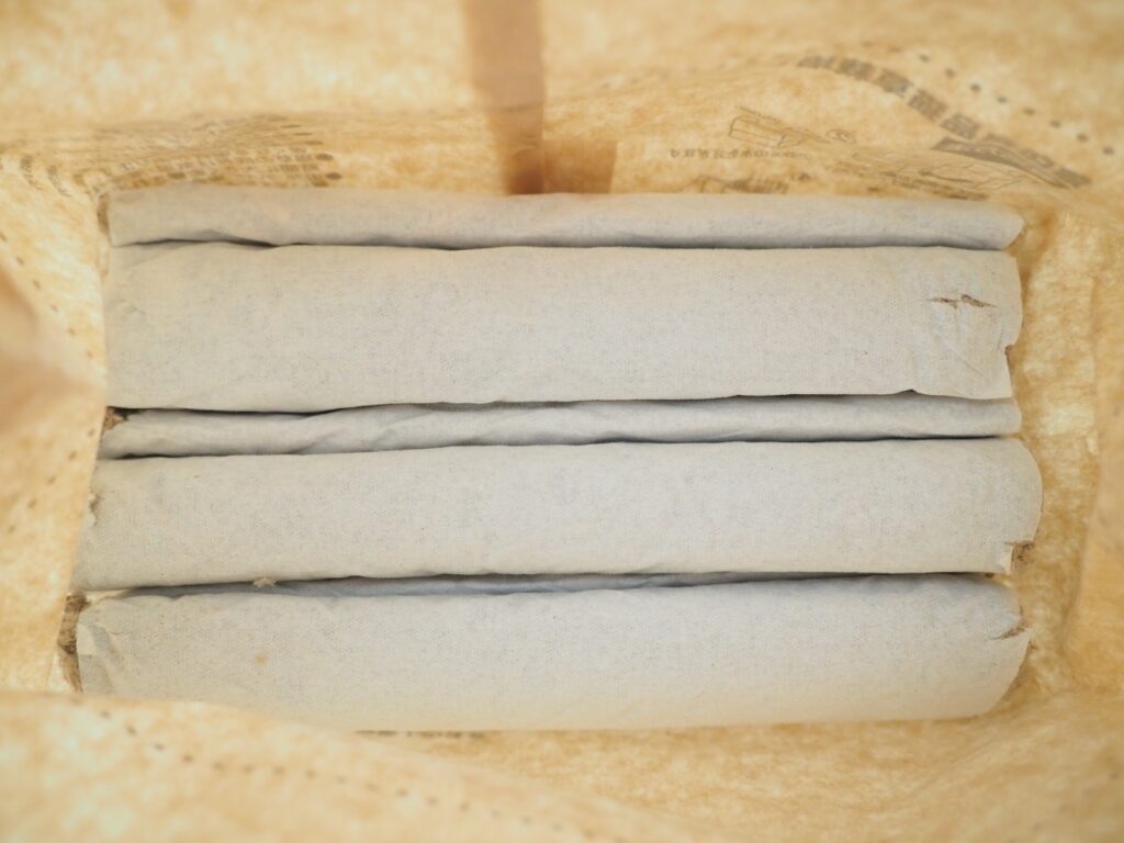 まずは容器となる袋の封を切り、その上部を線の引かれたところまで外側に向かってまで折ります